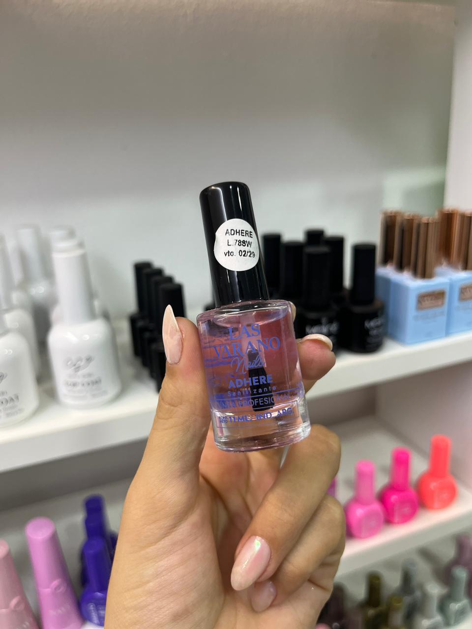 Solución Líquida, para limpieza y de vehículo bactericida. Limpia las uñas, nivelando el PH de la piel y tiene acción bactericida. Genera mayor adherencia a la uña. Luego de limpiar la uña y retirar impurezas de la misma, se coloca con el pincel sobre la uña, dejar que se seque. Puede usarse antes del esmaltado común (ideal para aquellas personas que padecen hiperhidrosis o problemas de tiroides) y luego aplicar el color o producto que se desea usar.
